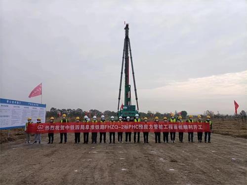 10月30日上午8点,由安徽永固桩基工程有限公司承建的中铁四局阜淮铁路FHZQ-2标PHC预应力管桩工程首桩顺利开工。 阜淮铁路预应力管桩工程地址位于安徽省蒙城县内,设计桩长32m,管桩采用TLQ-PHC-800-I-C80,送桩3.20m,…